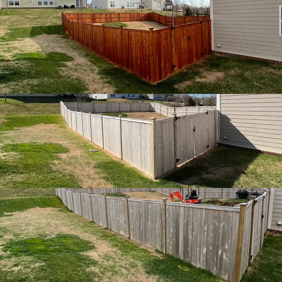 Unlike some companies that stick to pressure-heavy methods, we use hand-safe pressure settings and fan-pattern sprays to preserve the fence.